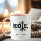 Personalized Rooted in Christ Christian Coffee Mug - Minimalist, girly and feminine design with Rooted In Christ word art. Customize with your name.