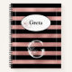 Elegant rose gold and black stripes with an ornamented initial make this a cute and classy notebook. Personalize it with your name or customize it for someone else!