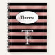 Personalized Rose Gold Stripes with Initial T Notebook