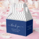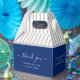 Looking for personalized favor boxes for your next party, shower, or wedding reception? These royal blue favor boxes are simple and elegant and will compliment any wedding theme. Personalize wedding favor boxes with the couple's name, wedding date, and a special quote or saying on the side. Custom wedding favor containers, boxes, can hold candies or a small gift for guests. These can also be used for wedding cake slice boxes to send home with your guest. Give a small gift or favor to say "thank you for coming"