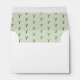 Personalized white envelope featuring a ruby-throated hummingbird. Inside of the envelope is a pretty hummingbird pattern on a light green background. The font style, font size and color can be changed by clicking on "customize further". The bird image is taken from an original watercolor by C. Dobbins.