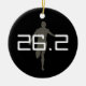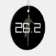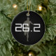 Add your name, marathon title, and time or other text to the back of this personalized marathon runner Christmas, Holiday, or Car Auto Ornament. Features gray shadow of a runner on front with 26.2, marathon distance in shades of grayscale black and white. Back is black with your custom text in white. Great gift to commemorate completion of a sports marathon for a running fanatic or sports fan.