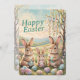 Celebrate Easter with cute, retro charm using this personalized Easter greeting card, featuring a watercolor bunny family set in a meadow with a decorated tree and lots of colorful Easter eggs. Soft pinks, pastel greens, blues, and botanical details create an elegant vintage aesthetic. This fun Easter card is an ideal choice for those who love retro vintage illustration style and seasonal stationery. Fully customizable, this card allows you to add your family name, individual names, or a personalized Easter message, making it a thoughtful option for family greetings, spring well-wishes, or friendly holiday correspondence. Perfect for anyone who appreciates non-photo Easter cards, this design offers a charming way to celebrate the season.