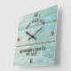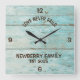 Customize this rustic aqua clock with the couple's name and established date. The clock features the phrase "Love never fails," serving as a reminder of the importance of expressing love. The font is dark brown, which complements the background.