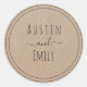 Check out these cute modern stickers for your wedding. They feature a rustic Kraft paper background, a cute script and customizable names for the bride and groom to add their own name. Customize text as you please to match your wedding vibe.