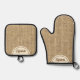 Personalized Rustic Simulated Burlap Oven Mitt & Pot Holder Set