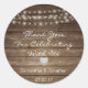 Personalized Rustic String Lights Wood Wedding Classic Round Sticker