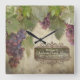 Personalized Rustic Vineyard Winery Fall Wine Sign Square Wall Clock