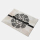 Here is a pretty winter holiday door mat that you can personalize with your family name. An illustration of pine cones and holly branches surrounds a black ribbon that features a name or monogram of your choice in the center. This festive design appears against a neutral watercolor painted background. It makes an artistic first impression for any entryway.