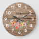 Personalized Rustic Wood And Pink Floral Kitchen Large Clock