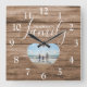 Personalized Rustic Wood Effect | Heart Photo Square Wall Clock