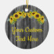 Personalized Rustic Wood Sunflower Custom Text Ceramic Ornament