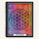 Personalize this beautiful Sacred Geometry Flower of Life spiral notebook with your name or short message! Purple, yellow, orange and blue watercolor background with mandala background. Wonderful and unique sacred geometry notebook for those who love and explore the spiritual meaning of shapes.