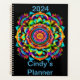 Blue , purple, orange, yellow and pink mandala 2024 Planner. Psychedelic Mandala 2024 Planner. Colorful Mandala Planner. Psychedelic Sacred Geometry Planner.