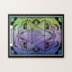 Personalize this beautiful Sacred Geometry Tetrahedron jigsaw puzzle with your name or short message! Green and purple watercolor background with mandala background. Wonderful and unique sacred geometry puzzle for those who love and explore the spiritual meaning of shapes.