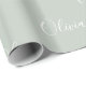 Pretty white on sage green girly girl personalized wrapping paper. Perfect for a subtle sage pastel green birthday party.