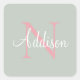Personalized Sage Green Monogram Pink Square Sticker