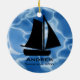 Personalized Sailing Ornament Christmas 20XX on a starburst background. All text customizable, front and back!