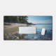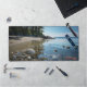Bring the quiet beauty of this sandy beach into your workspace with this exquisite desk mat. Personalize it with a name printed on the lower right corner. This mat features a view of a beach with rocks and sea shells with trees lining the background and gentle waves rolling in with the sea breeze with a high-quality print from a high definition graphic. It provides a smooth and comfortable surface for your work for your laptop, keyboard and mouse. It will also transform your workbench with a stylish and elegant touch. Perfectly suited for all creators, artists, writers and anyone inspired.