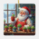 Celebrate the holidays with a unique blend of Christmas magic and gardening passion! This delightful personalized ceramic ornament features a charming watercolor illustration of Santa Claus, dressed in his classic hat and red overalls, happily tending to his miniature succulent and cactus garden.