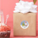 This round Christmas sticker features a cheerful watercolor Santa waving beside a decorated tree in a snowy winter scene. The soft hand-painted style gives it a cozy, classic look that works beautifully for sealing holiday cards, gift bags, or packages. Personalize the “From” line to make each sticker your own — a simple, festive way to add a warm touch to every gift.