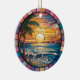 A Personalized Travel Souvenir Ornament designed to celebrate your unforgettable trip. Whether you went for work, enjoyed a romantic getaway, or took part in a school exchange program, this ornament commemorates a special moment you’ll always cherish and want to remember for years to come. This ornament features a stained-glass-style design of a beach with waves at sunset, creating a truly eye-catching piece.