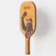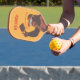 A whimsical illustration of a sasquatch playing pickleball. Personalize with a name. The tagline is a pun on bigfoot and foot faults - choose to keep the tagline or replace with your own funny phrase. Background color can be changed on both sides. © Kimbellished, LLC