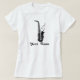 Fun music tee shirt has personalized saxophone music design.