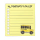 To Do List shopping note pad design features an original marker illustration of a yellow school bus. Perfect for a bus driver or teacher. Just personalize with your information.