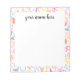 I love this notepad. It’s just the right size for my grocery list and my to do list. Hi I was surprised at the quality of the paperwork.It was heavier than I expected, and I really like it. The printing turned out beautifully!