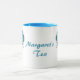 Show everyone how you prefer your mug of tea with this personalized mug, Customize it to add your own name. This mug will make it perfect for making sure no one ever gets your drink wrong ever again, and knows that you love your morning tea in bed! Scooter blue speech bubbles at each side of the name allow you to add your own special message for the coffee maker in your family. Also available for all hot beverage styles in a range of styles and colors.
