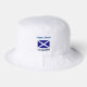 This bucket hat boasts the blue and white St. Andrew's Cross Scot Flag with the word SCOTLAND, in the colors of the flag, underneath. Personalize with your name in the provided space, in blue letters. Or, add someone else's name for a heritage gift. Hat can be fun at family reunions and other parties and events. Cool gift for travelers, too.