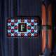 Make your own personalized luggage tags for anyone who loves the country of Scotland. Featuring a unique checkered pattern with the Scottish national flag and red hearts on black squares. With a custom text box where you can type in your own initial or any other letter (or number) you might want. Just click to personalize the template and replace the placeholder text with your own. These are great for patriotic Scottish people who like to travel, and for people planning a trip to beautiful Scotland!