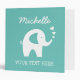 Personalized turquoise binder with baby elephant and custom text. Cute animal design with hearts for girl or boy. Customizable background color ie pastel pink, soft yellow, gray, light blue, purple etc. Adorable baby illustration for photo album etc. Sweet gift idea for baby shower, 1st birthday, new mom or mother to be. Elegant script typography. Scrapbooking album.