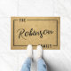 Welcome guests with personalized elegance right at your doorstep with our custom minimalist family name doormat! This sophisticated mat features your family's name beautifully centered in a stylish script font, elegantly encased within a clean, modern minimalist border. The design is printed on a durable, flat mat, offering the inviting look of a natural coir texture without the fuss. It's the perfect housewarming gift, a thoughtful present for newlyweds, or a wonderful way to add a personalized and welcoming touch to your own home's entrance with a clean, contemporary aesthetic.