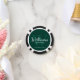 This design features personalized groomsman's name in white classic script font style with wedding details in white classic serif font style and monogram in light emerald green classic serif font style as background, on emerald green background.