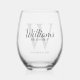 Personalized Script Monogram and Name Groomsmen Stemless Wine Glass