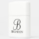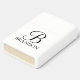 features personalized monogram in black classic script font style and name in black classic serif font style on white background.