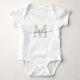 Celebrate your little one in style with this personalized baby bodysuit featuring a classic serif monogram and elegant script name overlay in warm neutral beige. Perfect for baby showers, first birthdays, or those special monthly milestone photos. Makes a beautiful gift for new parents or a unique coming home outfit from the hospital. Soft, comfortable, and completely customizable to make it truly your own.