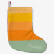 Bring bold vintage charm to your holiday decor with this personalized retro color block Christmas stocking! Featuring warm, layered shades of golden yellow, burnt orange, and soft sage green, this design evokes cozy mid-century style. The bottom is customized with a name in elegant script—perfect for each family member, child, or guest. A unique and trendy stocking that blends nostalgia with modern simplicity!