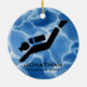 Scuba Diving Personalized Ornament Christmas 20XX on a wavy water background. All text customizable, front and back!
