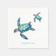 Sea Turtle Turquoise Text Beach Wedding Cocktail napkins.