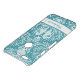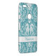 This customizable smartphone case features a teal and white damask design with seahorses, coral, seaweed, and shells. Add your own name to personalize, or give as a gift.