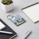 This custom keychain is a great gift for new homeowners. It highlights a charming home and heart design with typography that celebrates the joy of a new place. The centerpiece features creative typography with heartfelt phrases about home, set against a picturesque image of a house with a heart, a cheerful bird in the yard, and a bright blue sky. It also includes two customizable text fields, perfect for adding personal messages, names, or unique touches to make it even more special.