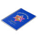 Stylish personalized Israeli blue ROSH HASHANAH Jewish New Year Notebook, showing a Star of David with a bowl of apples and a dish of honey. Above is the greeting L'SHANAH TOVAH, written in white and faux gold typography, followed by ROSH HASHANAH in Hebrew text at the bottom. Underneath that is a placeholder name and year. In the background is a subtle tiled pattern saying Rosh Hashanah. ALL TEXT (excluding background text) IS CUSTOMIZABLE, so you can create your own preferred text and spellings (eg. Shana Tova), and add your name and year, with the easy-to-use templates. Choose from a wide selection of stylish, customizable Jewish celebration cards and gifts designed by Berean Designs. Matching planner and other gifts available.