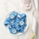 I ordered these for my blueberry themed baby shower which is only 9 days away. They seemed to be packaged well but after I pulled the bag out of the package I’m finding holes in the wrappers. Without opening the bag they were shipped in I took pictures, it was very obvious that more than half of the candy has a ripped wrapper or is already opened on the top. I can not serve my guests half opened candy, do not waste your money on this product. The labels however are beautiful and I’m now wishing I purchased only labels for the kisses and bought my own candy at walmart. .