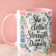 Vibrant watercolor floral border framing elegant calligraphy of Proverbs 31:25, surrounded by soft splashes of gold and pink. Personalized with name.
