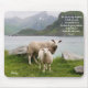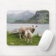 A sheep and lamb standing by a lake reminding Christians that the Lord Jesus is their dear Shepherd who watches over and cares for each one.