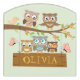 A personalized sign for children, with cute woodland cartoon owls, could by used for a door sign or on the wall. Can also serve as a nice gift.