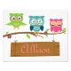 A personalized sign for children, with cute cartoon owls, could by used for a door sign or on the wall. Can also serve as a nice gift. Change name, color, font of name according to preferance.